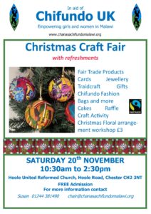 Christmas Craft Fair with refreshments, held in aid of Chifundo UK – Empowering girls and women in Malawi