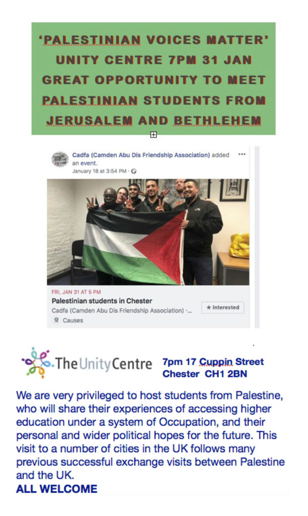 Further information: chesterfriendsofpalestine@hotmaul.com