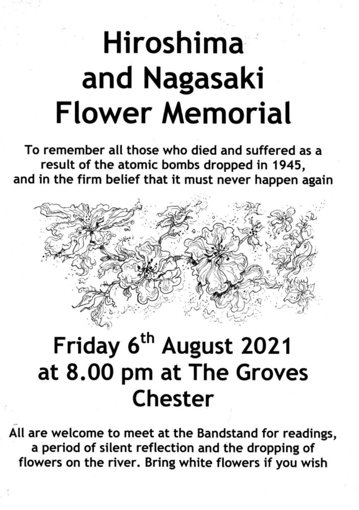 Friday 06 August, 8pm at The Groves, Chester: Hiroshima and Nagasaki Flower Memorial