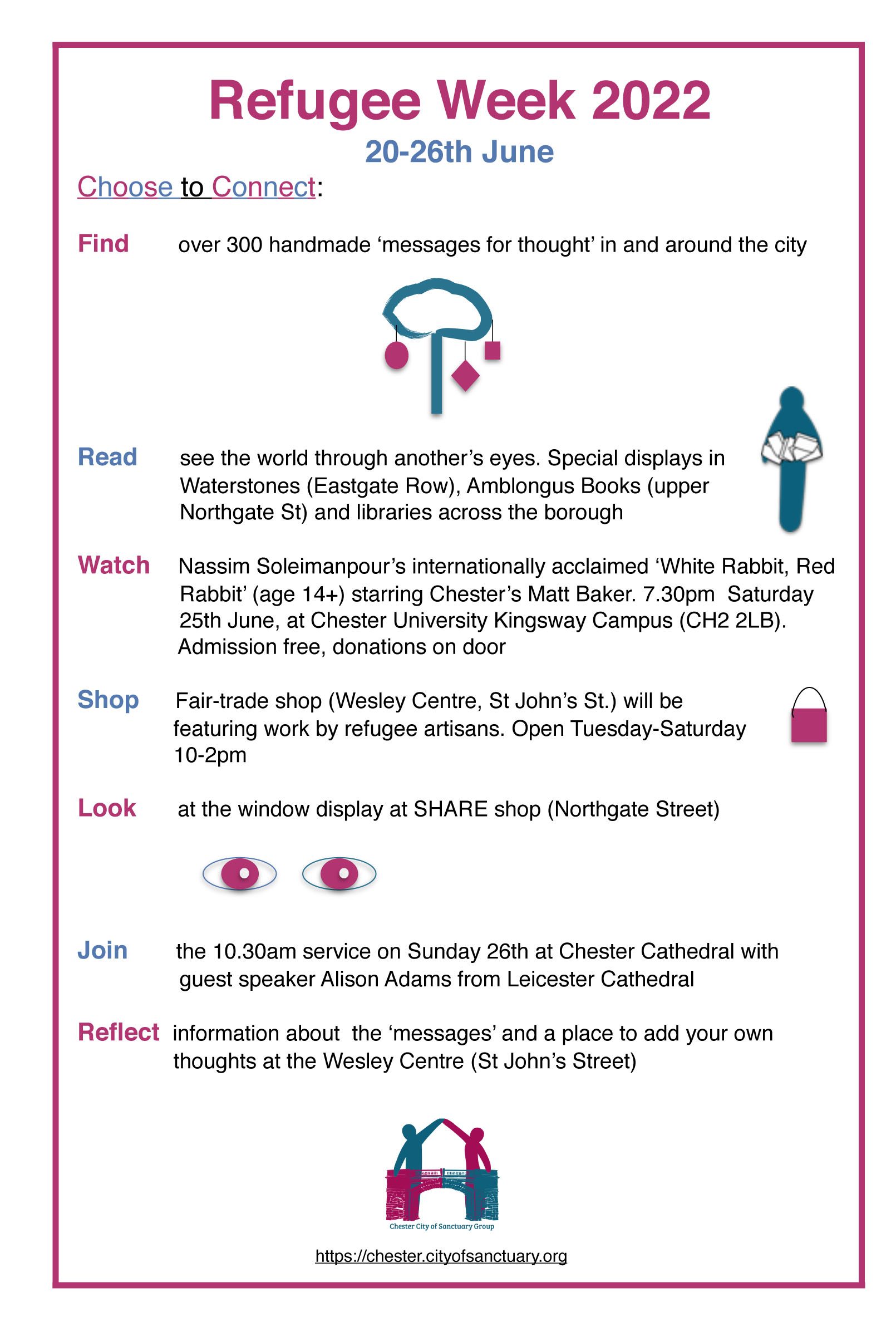 We hope that you are able to join in during this week and make time in Refugee week to Choose to Connect.