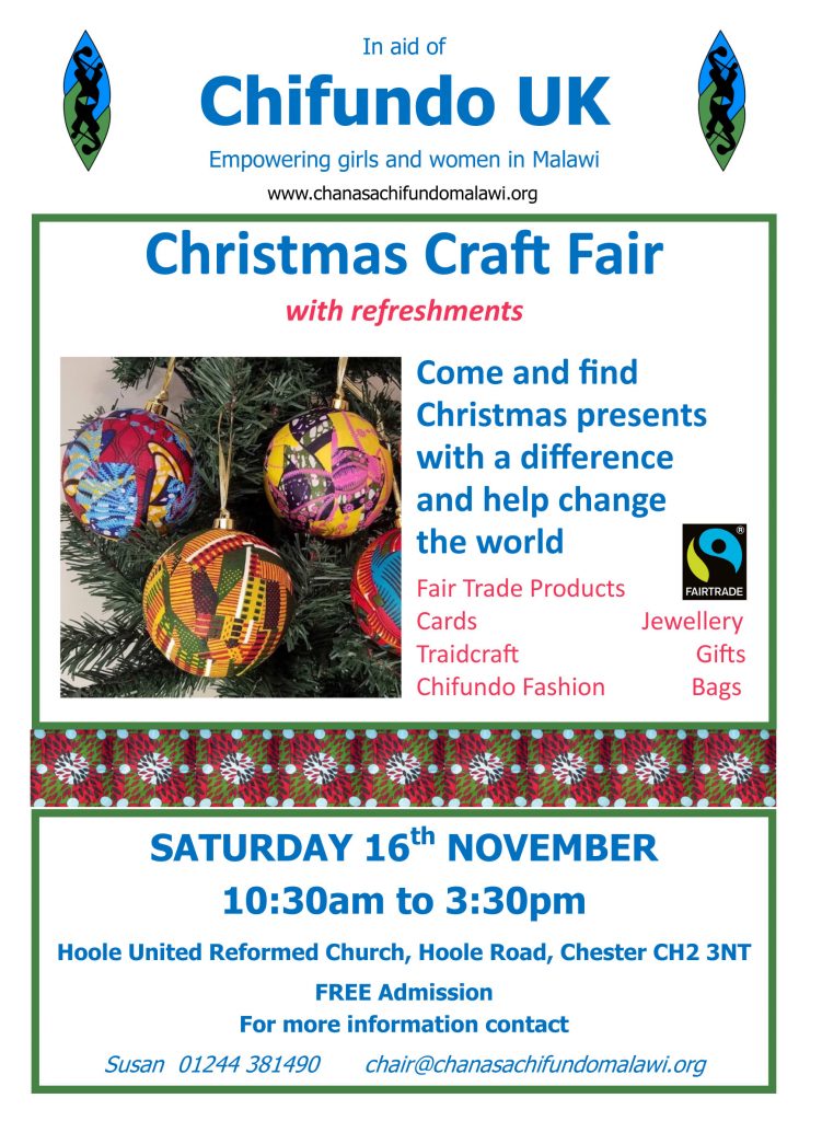 Sat 16th Nov – Christmas Craft Fair in aid of Chifundo UK