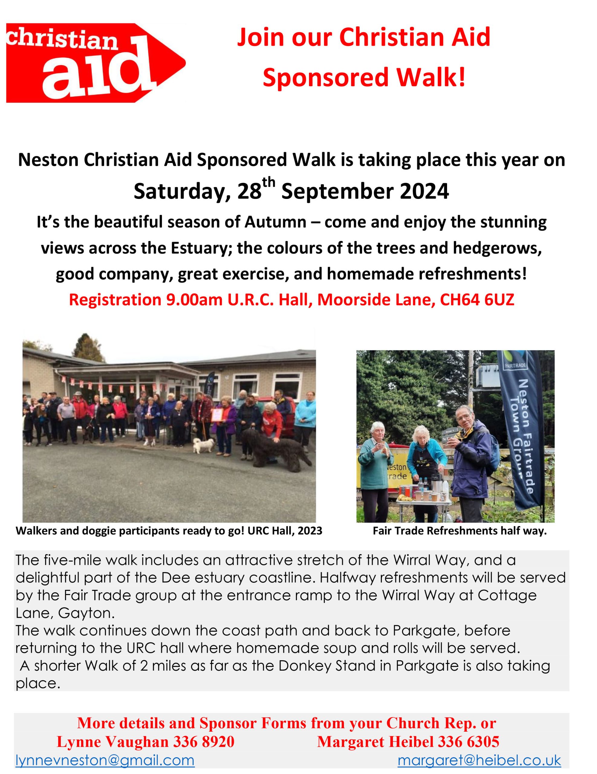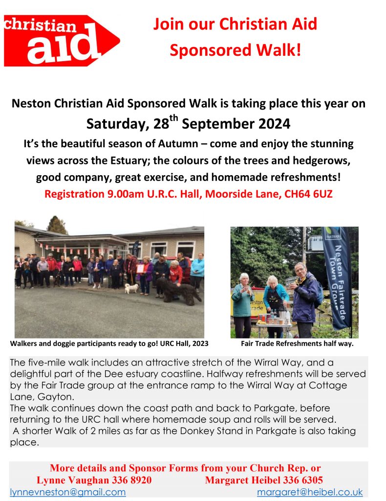 Neston Christian Aid Sponsored Walk is taking place this year on Saturday, 28th September 2024