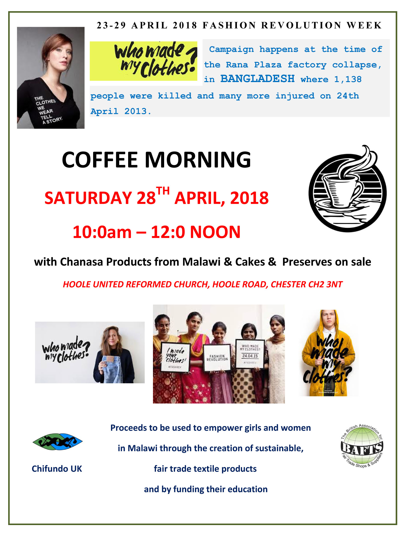 Sat 28th Apr – Coffee Morning for Fashion Revolution Week