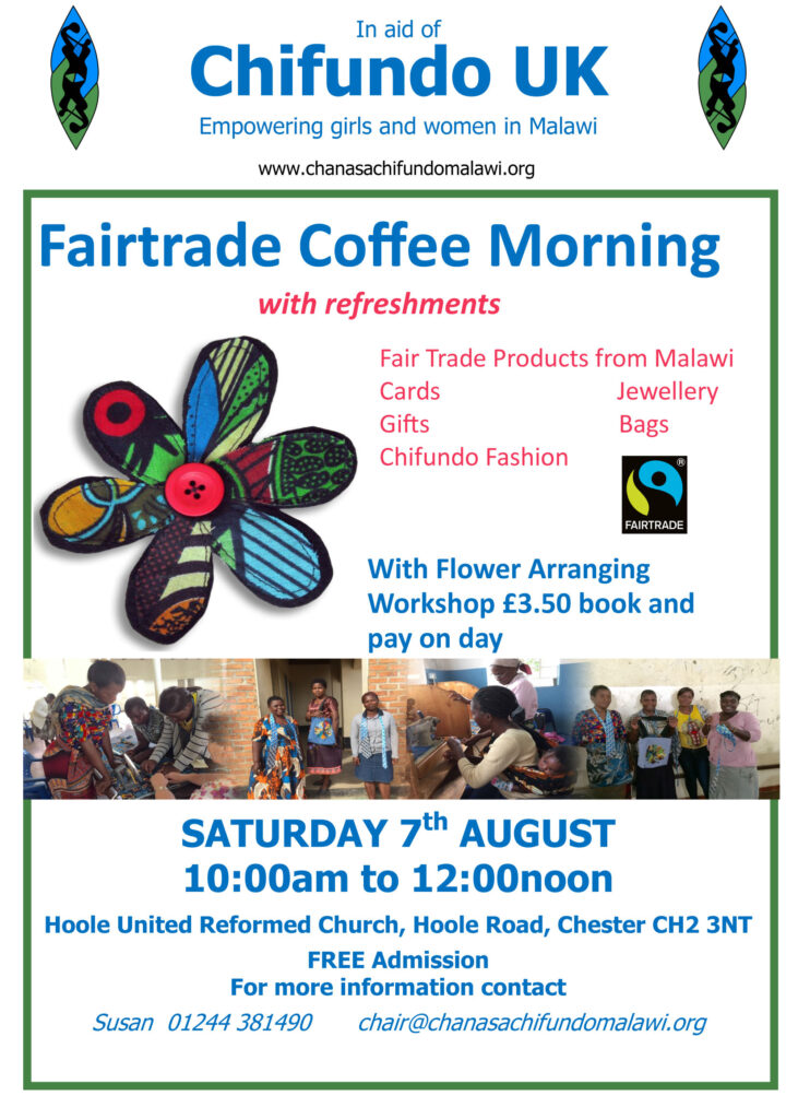 Sat 7 Aug – Fairtrade Coffee Morning, Hoole URC – Chifundo UK