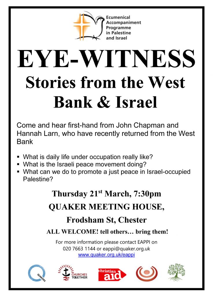 Thurs 21st Mar – “Eye Witness” : Stories from the West Bank & Israel
