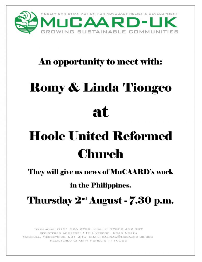 Each Year, when Romy & Linda Tiongco return to the UK for a few weeks, they have valued the times when they have met up again with people from the Chester area to share what they have been doing in Damulog and other areas of Mindanao in the Philippines. We have been inspired by the account of their work amongst the people of Mindanao whom they have helped to work their way to a more prosperous life, often supported by the monies raised through MuCAARD-UK.