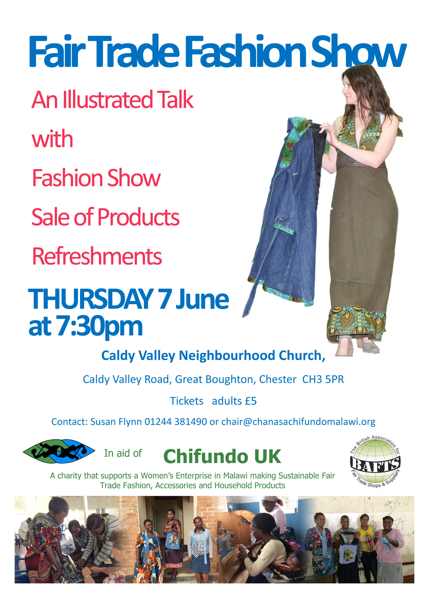 An Illustrated Talk with Fashion Show, Sale of Products, and refreshments. In aid of Chifundo UK – a charity that supports a women’s enterprise in Malawi.