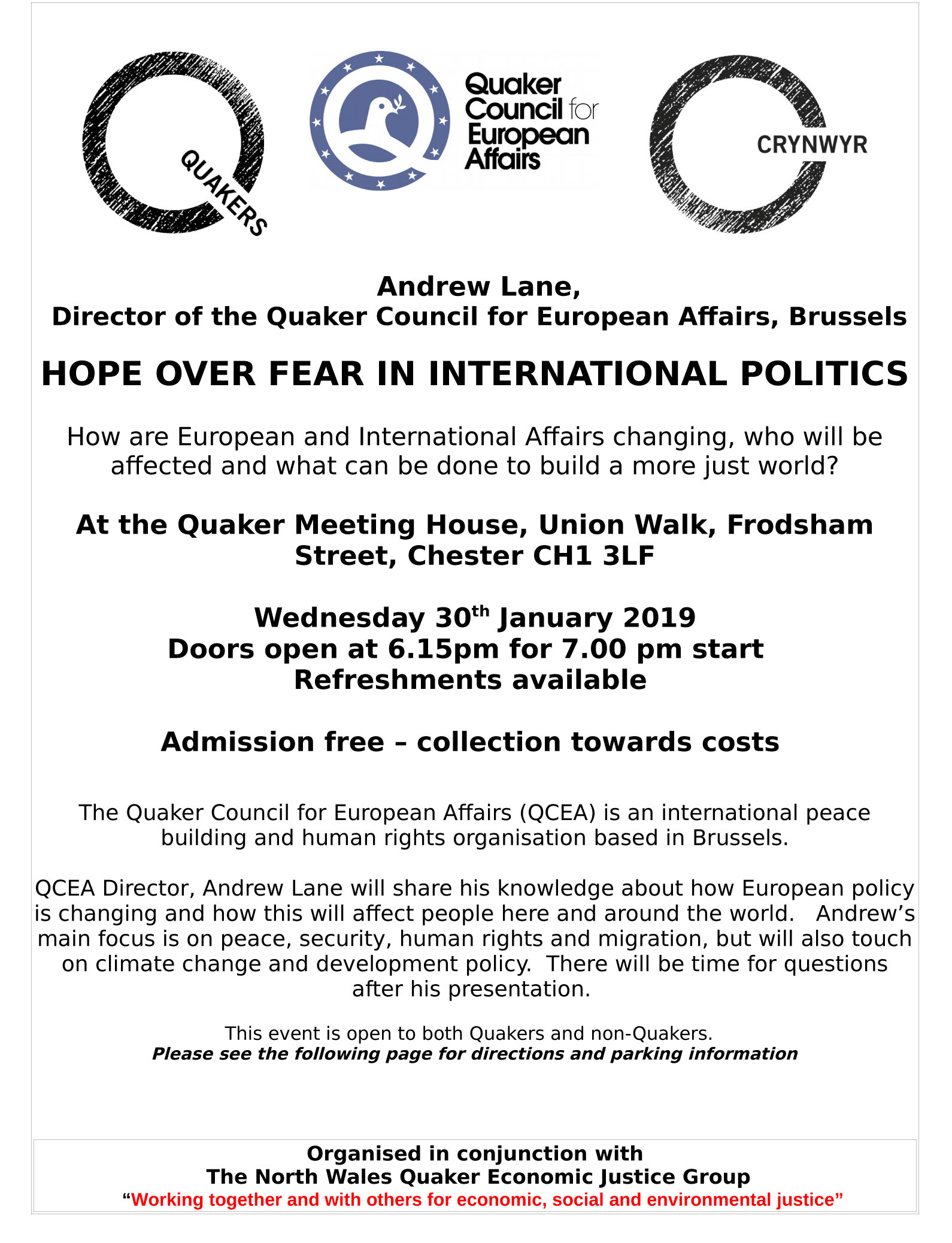 Wed 30th Jan – “Hope Over Fear in International Politics”